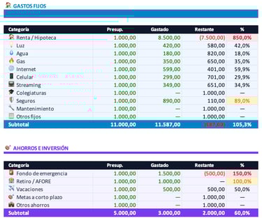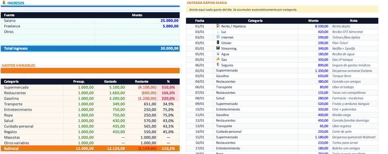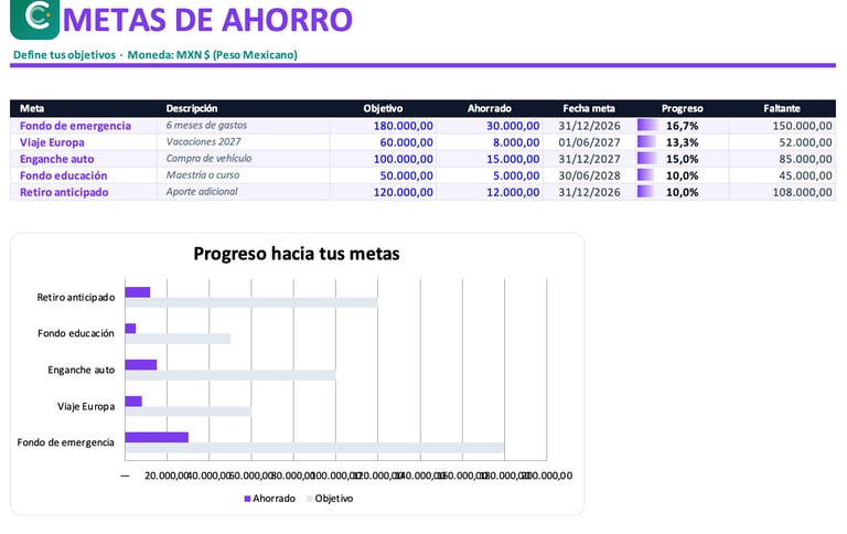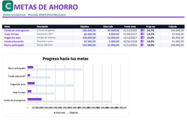 📅 12 hojas mensuales 📊 Resumen anual automático 🎯 Hoja de metas 💳 Módulo de deudas 💱 +10 Monedas ⚡ +1,800 fórmulas listas